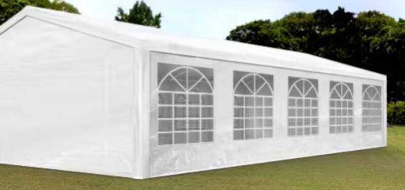 Robust und elegantes Partyzelt. Perfekt für Polterabende, Hochzeiten, Geburtstage und Firmenfeiern. Schützen Sie Ihre Gäste vor Wind und Wetter.